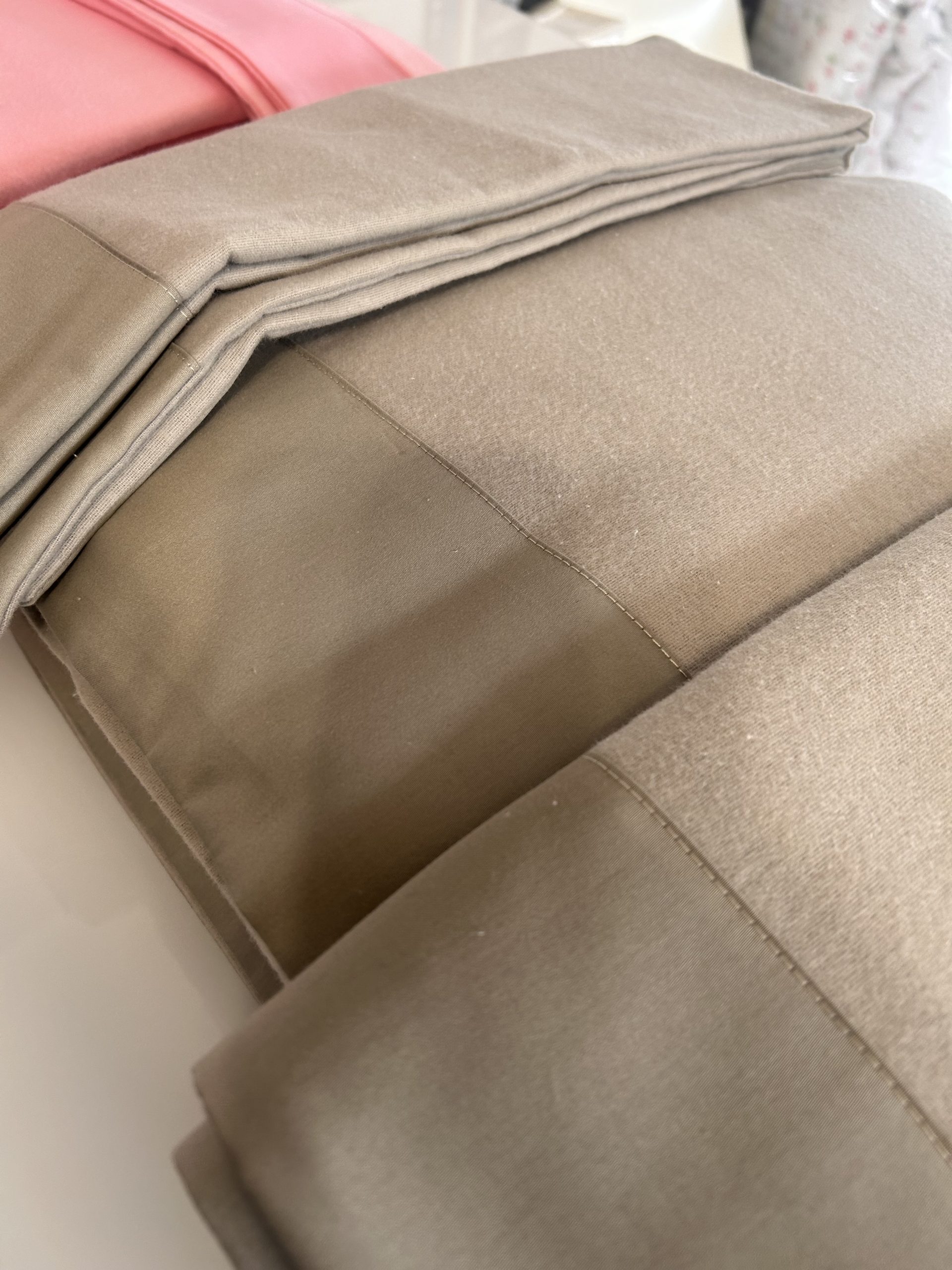 Le lenzuola sono realizzate in morbida flanella di alta qualità, un tessuto caldo e avvolgente perfetto per le stagioni più fredde. La superficie leggermente vellutata offre una sensazione soffice al tatto, garantendo comfort e calore durante il riposo. Il colore tortora, elegante e neutro, si integra con facilità in qualsiasi stile di camera da letto, conferendo un tocco di raffinatezza discreta.